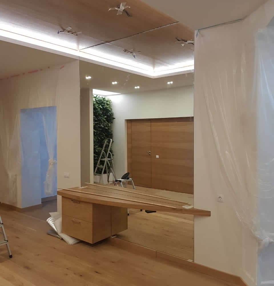 Монтаж декоративных зеркал — это отличный способ обновить интерьер, добавить ему воздуха и света, визуально расширить пространство. Он начинается с выбора зеркального полотна и вспомогательных элементов, и изготовления зеркальной конструкции по индивидуальному или типовому проекту на основании снятых замеров.
